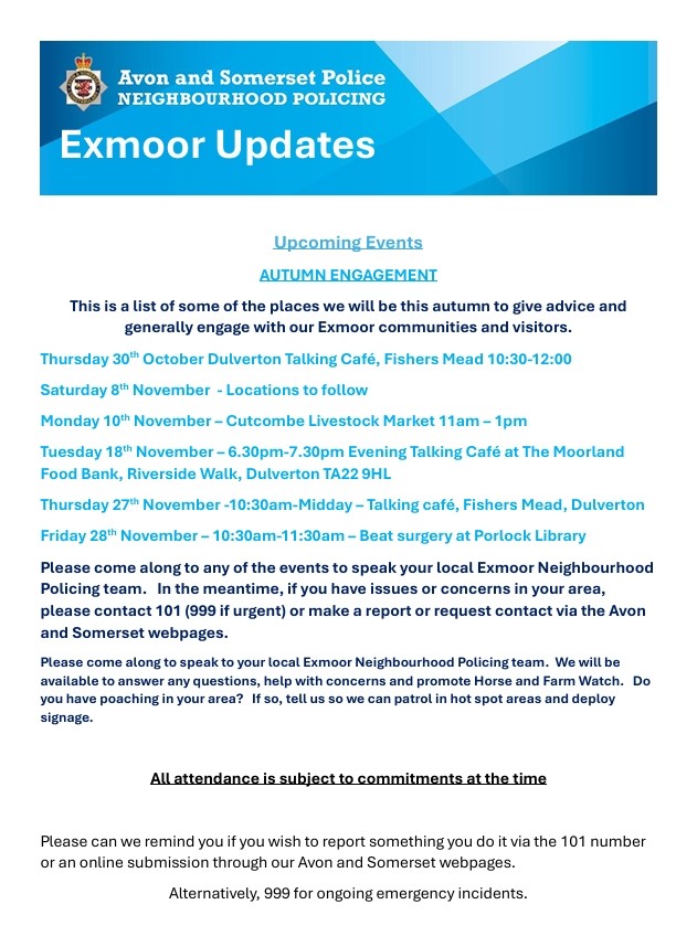 Parish Office, Old School Centre, West End Porlock, Somerset. TA24 8NP