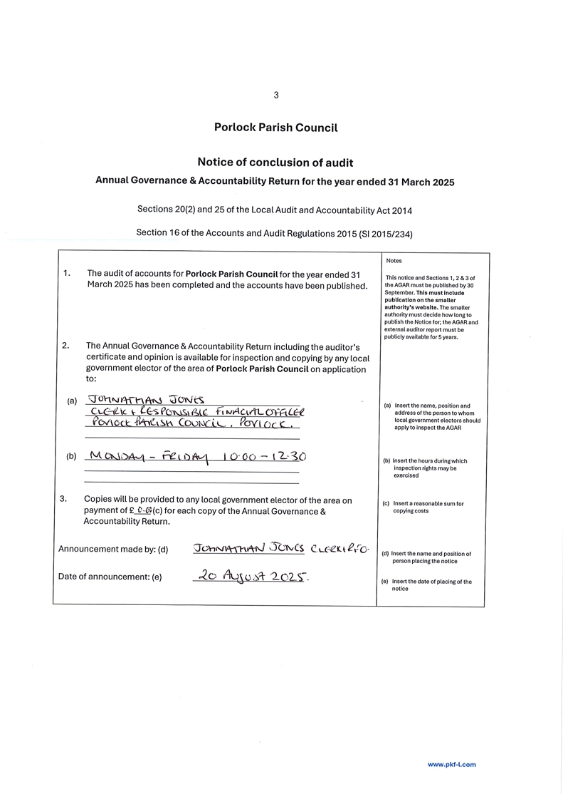 Parish Office, Old School Centre, West End Porlock, Somerset. TA24 8NP